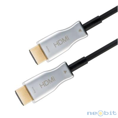 GOOBAY Optical Hybrid High Speed HDMI na HDMI 20m z Ethernet AOC pozlačen kabel Ključne lastnosti: dolžina: 20 m premer: 4,3 mm do 18 Gbit/s 4K Ultra HD 2160p (60Hz) AOC Hybrid Prenos signala visoke ločljivosti do 4K pri 60 Hz (2160p) in maksimalna hitrost prenosa do 18 Gbit/s 4K optični kabel lahko pokriva velike razdalje zaradi tehnologije AOC. Zagotavlja optimalno hitrost prenosa in nizke motnje kljub dolgemu kablu brez ojačitev. Tehnologija AOC (aktivni optični kabel) pretvori električni signal v optičnega in nazaj v električnega na koncu kabla (prosimo, upoštevajte smer signala pri povezovanju). Pozlačeni HDMI vtič in napredna tehnologija zagotavljajo popoln prenos signala, čist zvok in ostro, visokokakovostno sliko. Tanki, robustni kovinski čepi z zaščito pred upogibanjem so še posebej priročni za zaprte prostore. Kabel HDMI visoke hitrosti povezuje televizorje in monitorje z igralnimi konzolami, kot sta PlayStation ali Xbox, pa tudi s projektorji, pretočnimi sprejemniki, npr. Amazon Fire TV ali Apple TV. Povezava HDMI za trenutne funkcije, kot so ARC (Audio Return Channel), HDCP ali 4K 3D vsebina